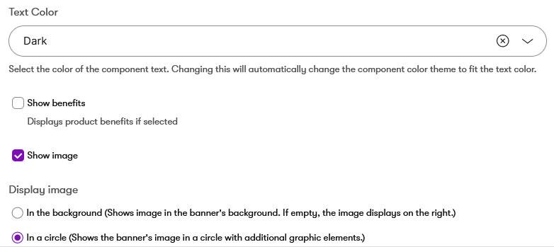 • Questa è la configurazione predefinita per l'Hero banner - colore del testo scuro e immagine in un cerchio